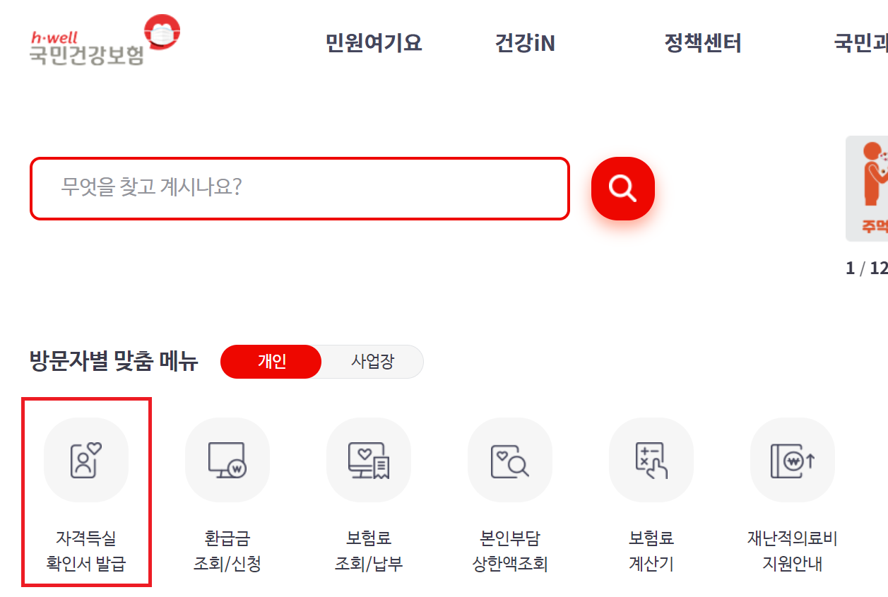 1. 건강보험에 대한 증명서를 띄어야 하니까, 국민건강보험 사이트로 들어갑니다.