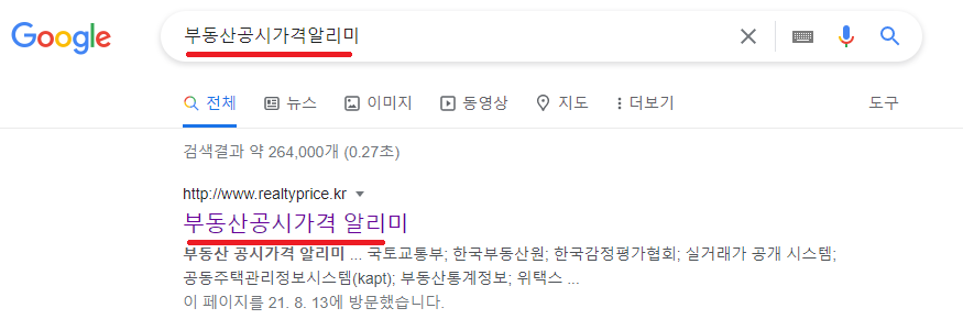 1) 검색어에 '부동산고시가격알리미'를 입력하고 클릭하여 들어갑니다.