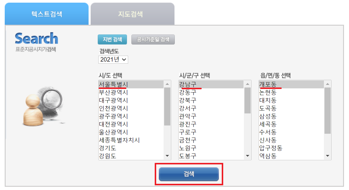 3) 마지막으로 표준지공시지가 및 개별지공시지가를 어떻게 어디서