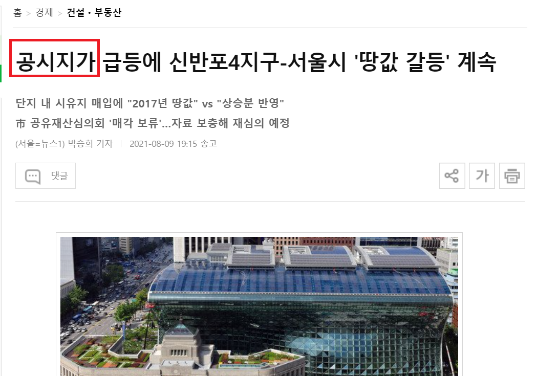공시지가가 무엇이고 이것이 급등하면 어떠한 일이 일어나기에 아래 뉴스가 나온걸까요?