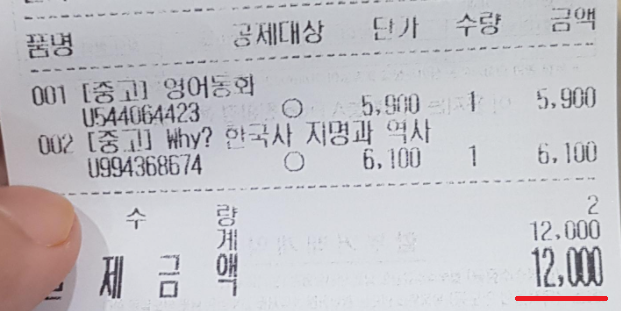 2권의 책을 구매하는데 12,000원이 들었습니다 ^^