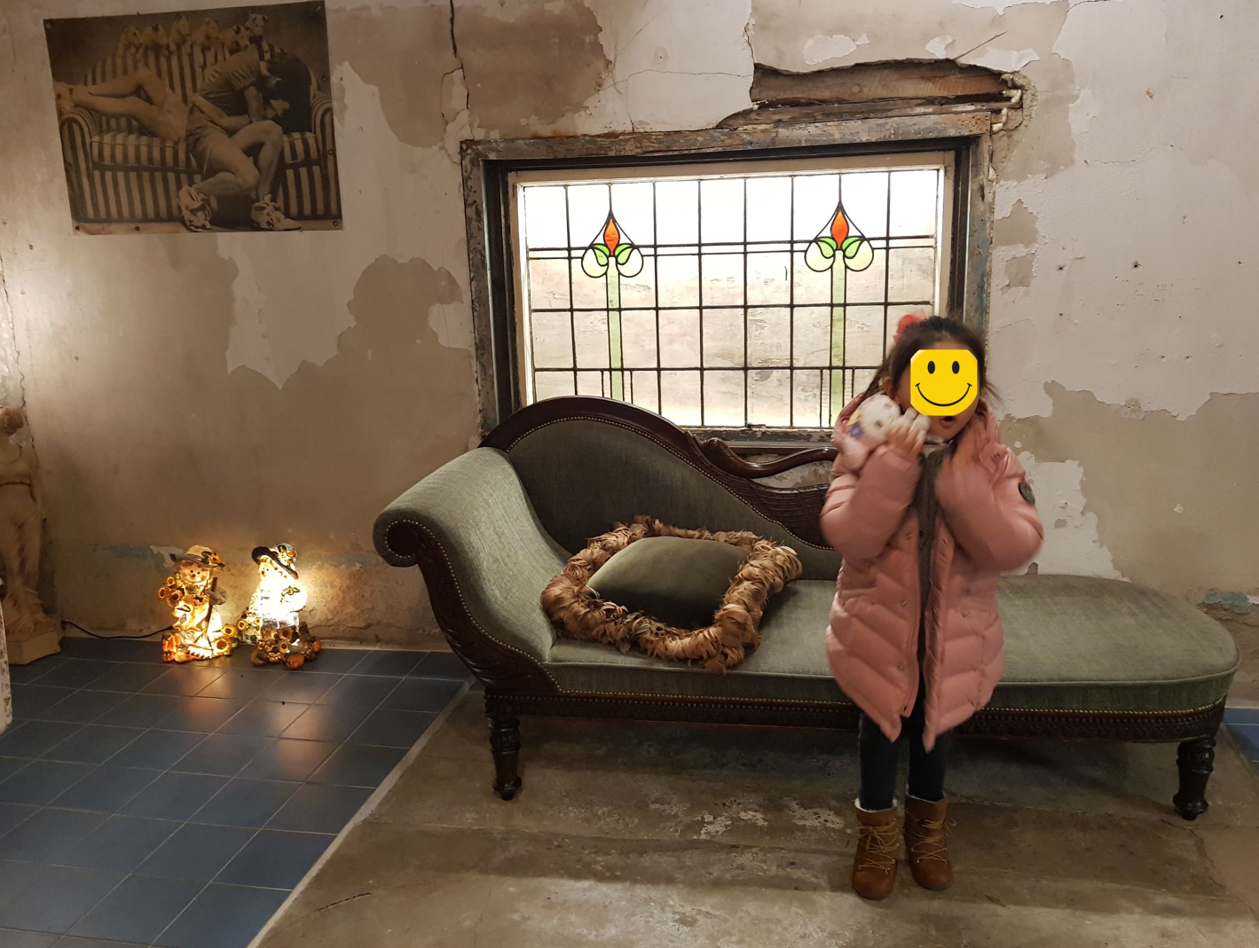 옛날 포스터, 벽에 금이간 집, 하지만 무언가 아름다움이 느껴지는 장소였습니다.