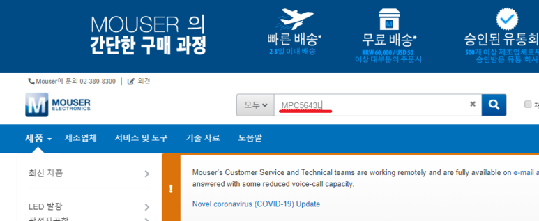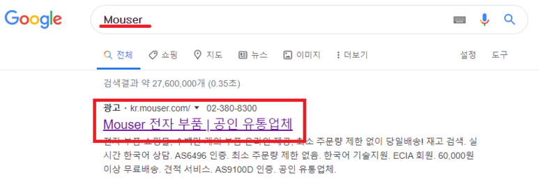 1. 구글에서 Mouser를 검색하고 아래 싸이트로 들어간다!