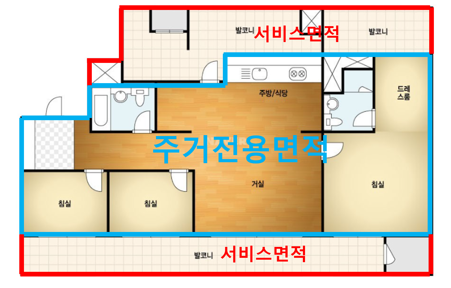 위키에서 이야기하고 있는것처럼, 서비스면적 중 하나인 발코니를 확장하여