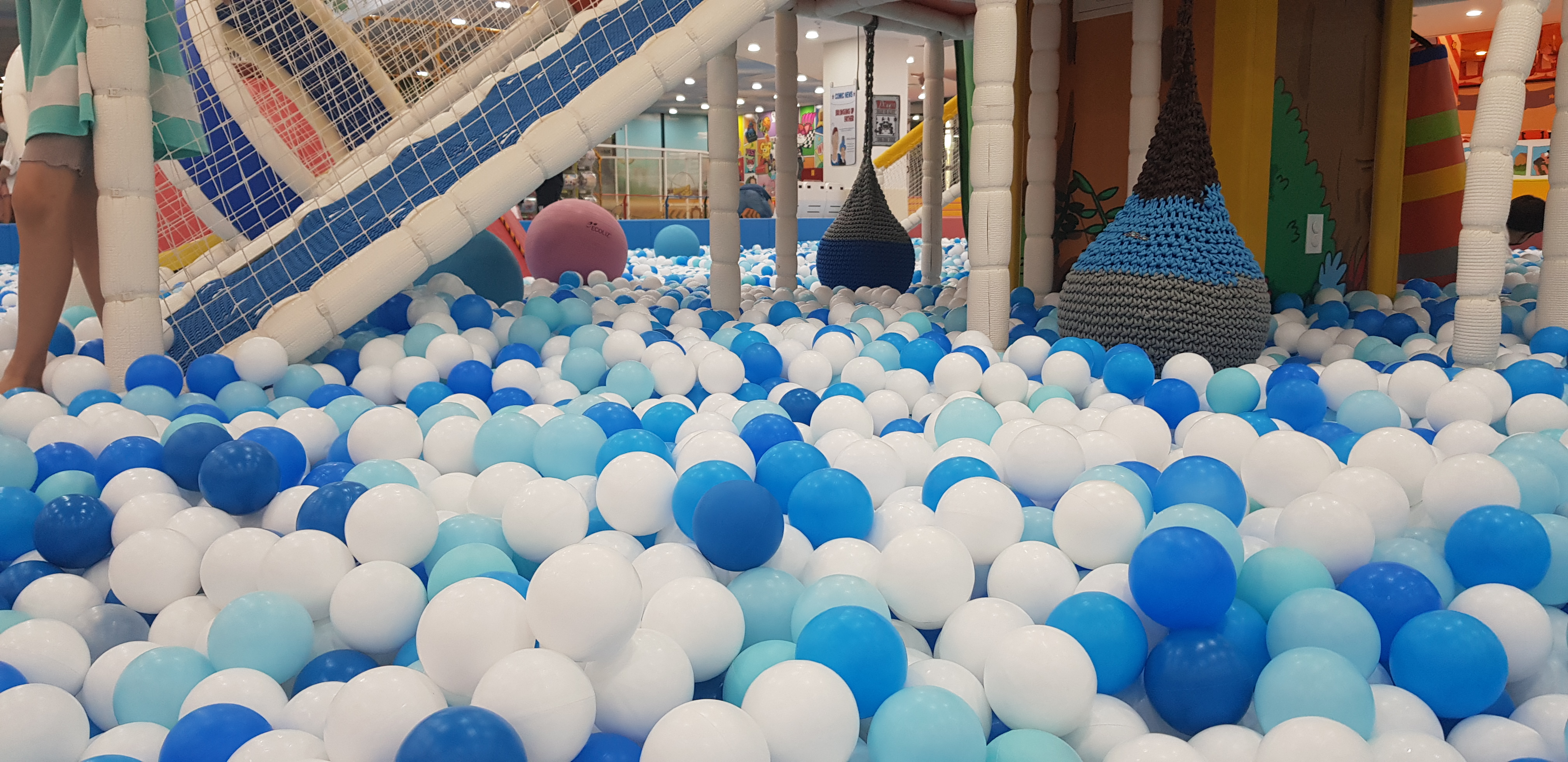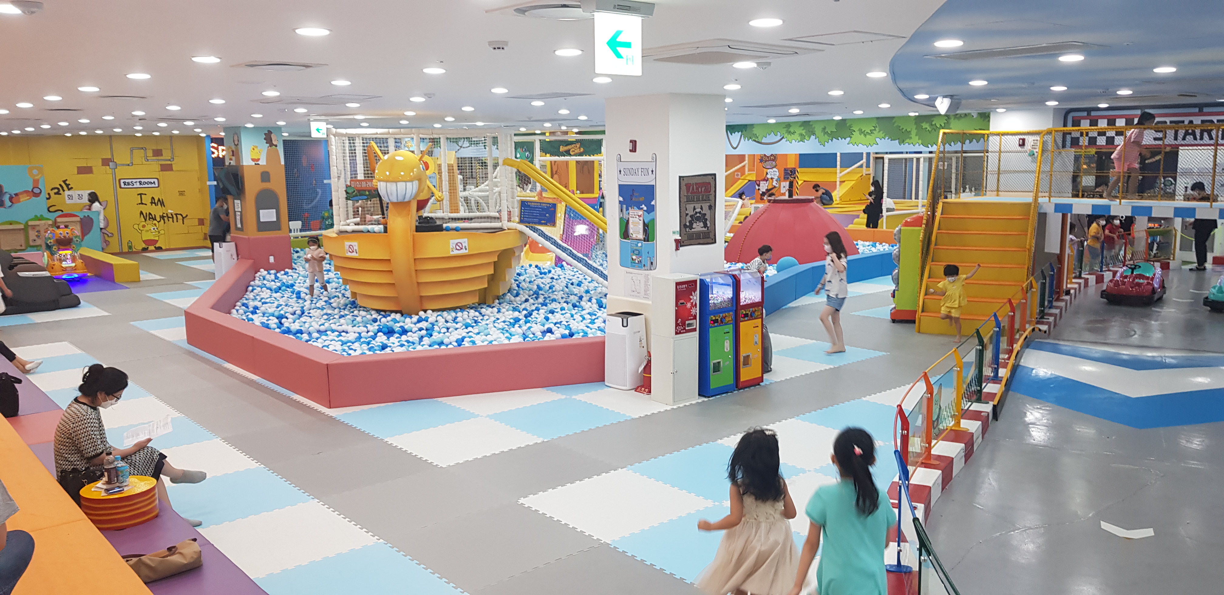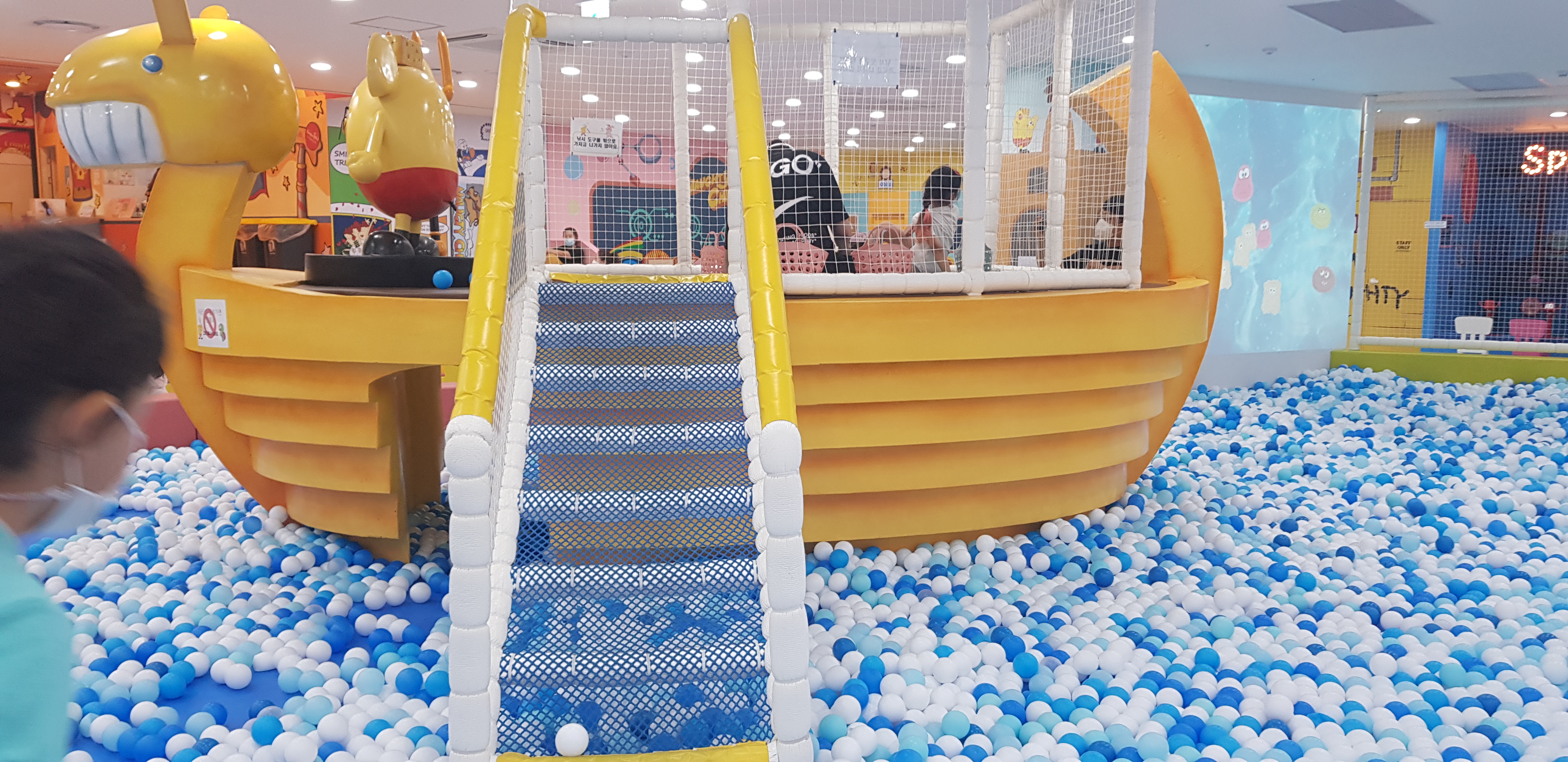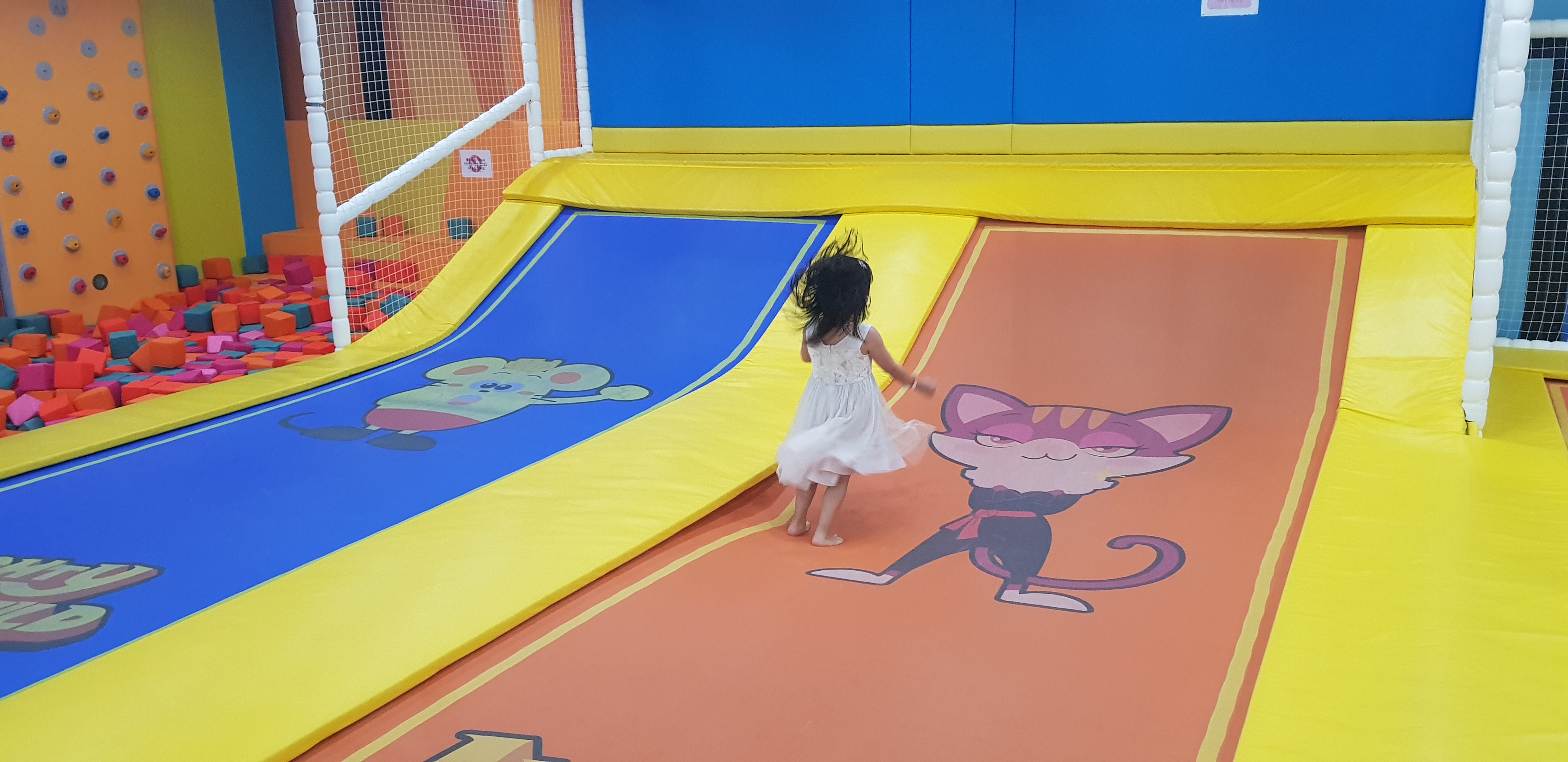 트렘플린존 옆에 암벽타기 및 스펀지 풀이 있습니다.