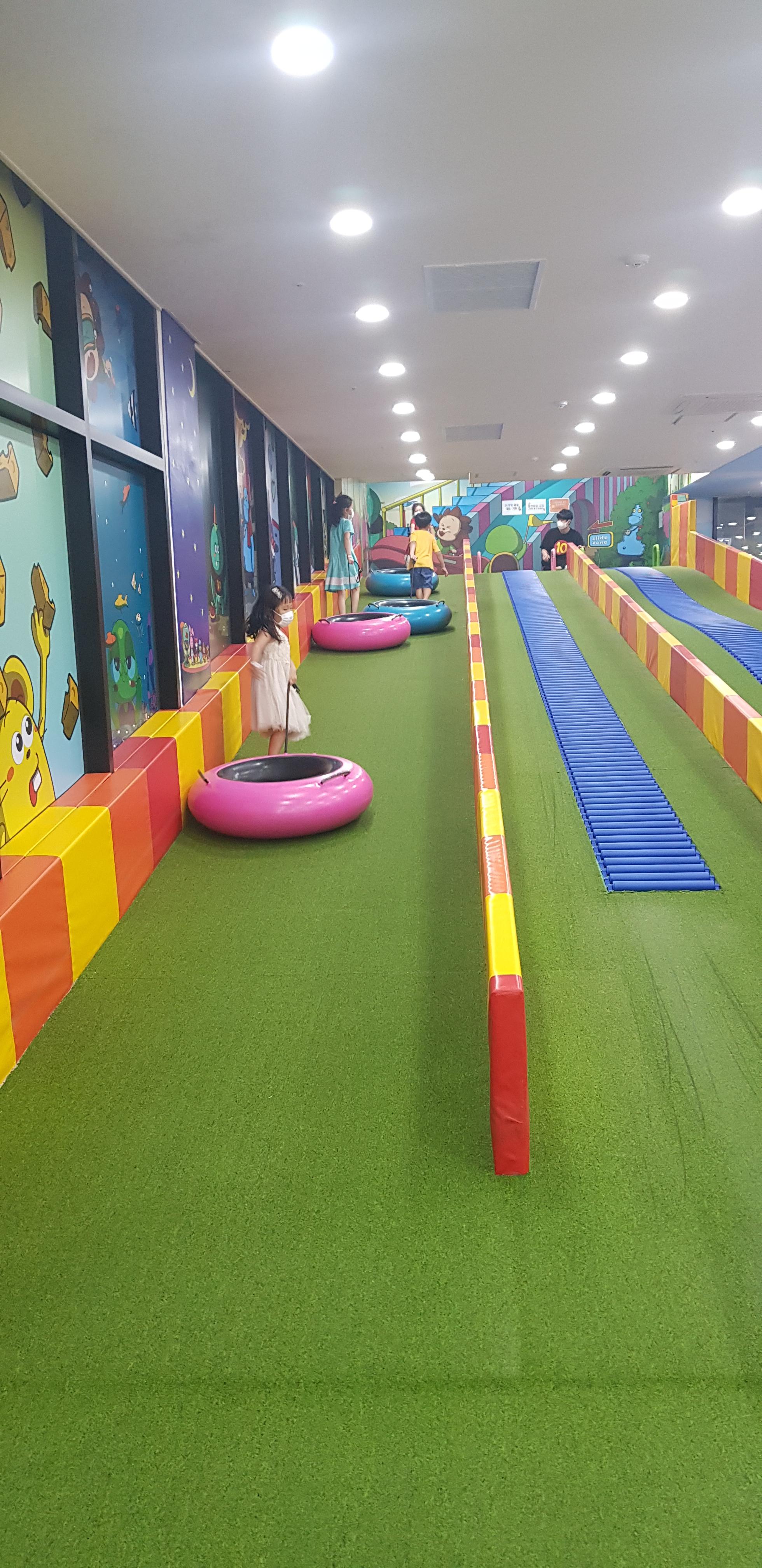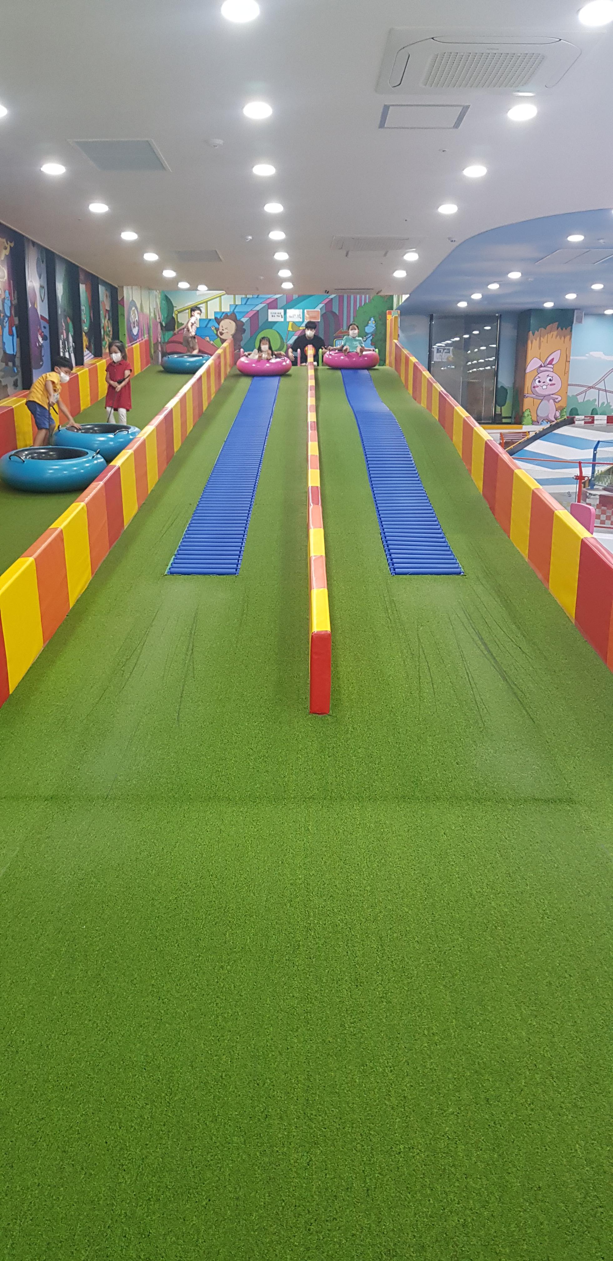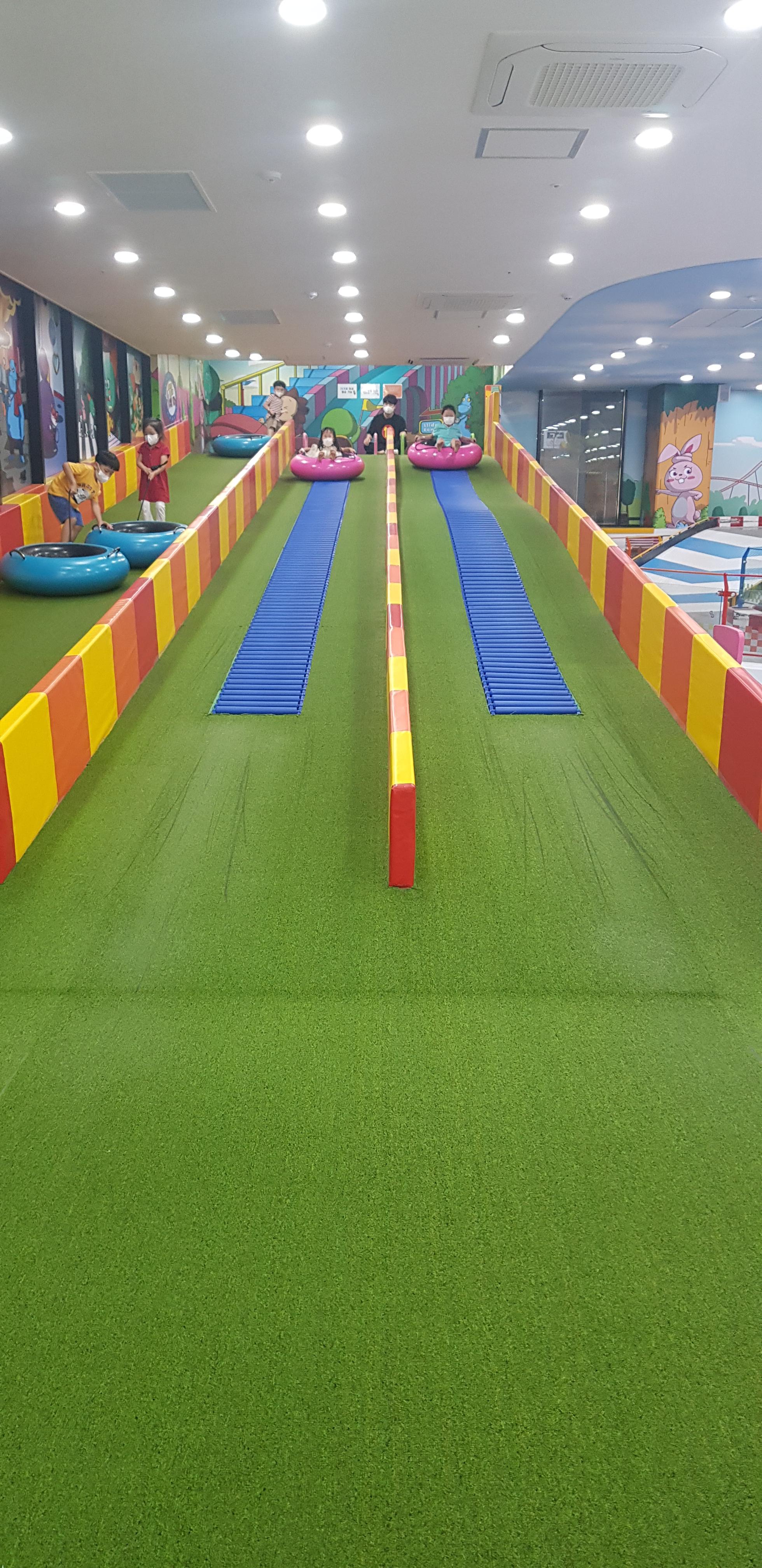 아이들이 튜브를 가지고 올라가서, 내려옵니다. 상당히 거리가 있습니다.