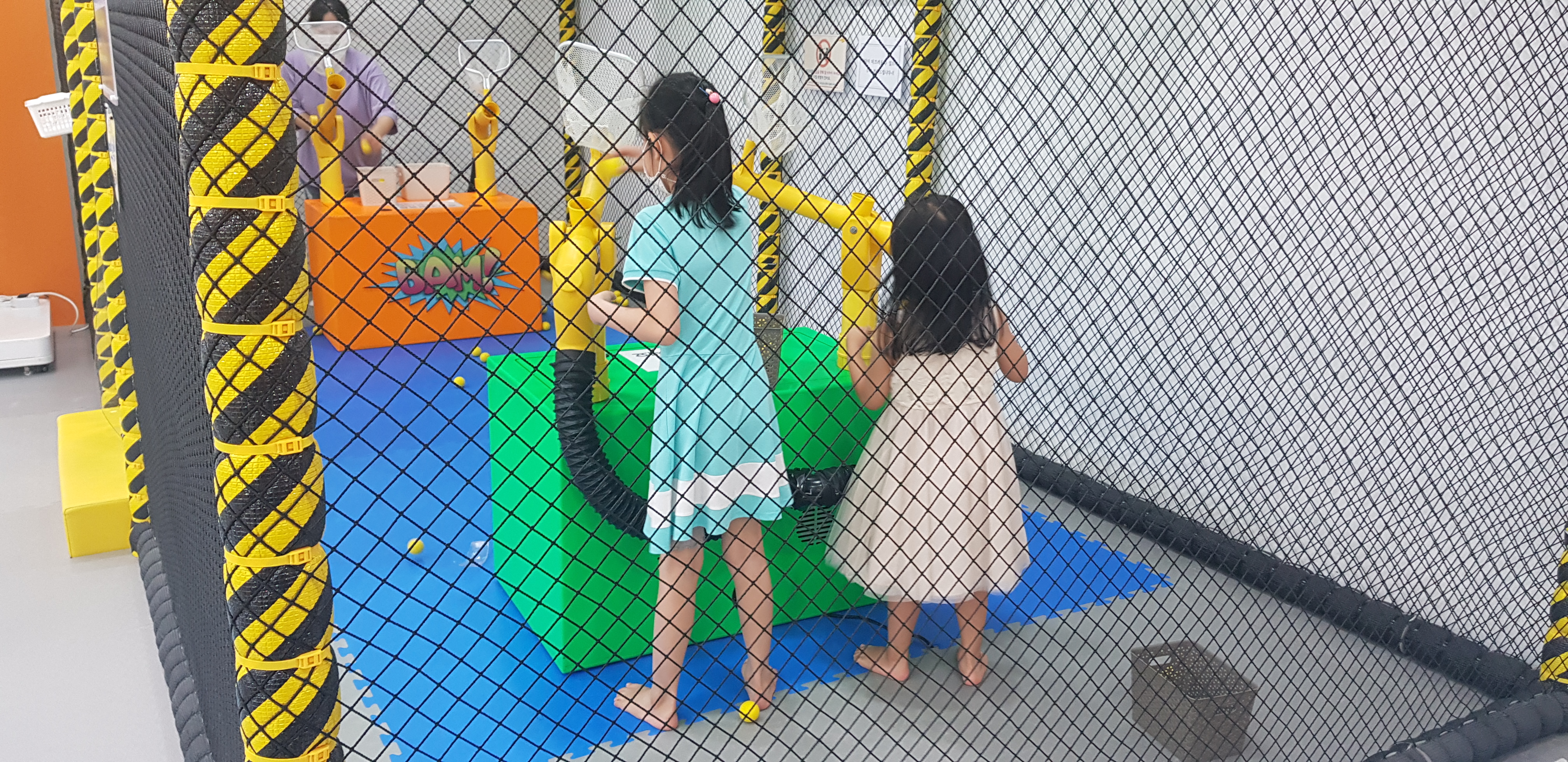 이제 스폰지 공을 넣어서, 바람을 이용하여 발사하는 놀이공간으로 가볼게요!
