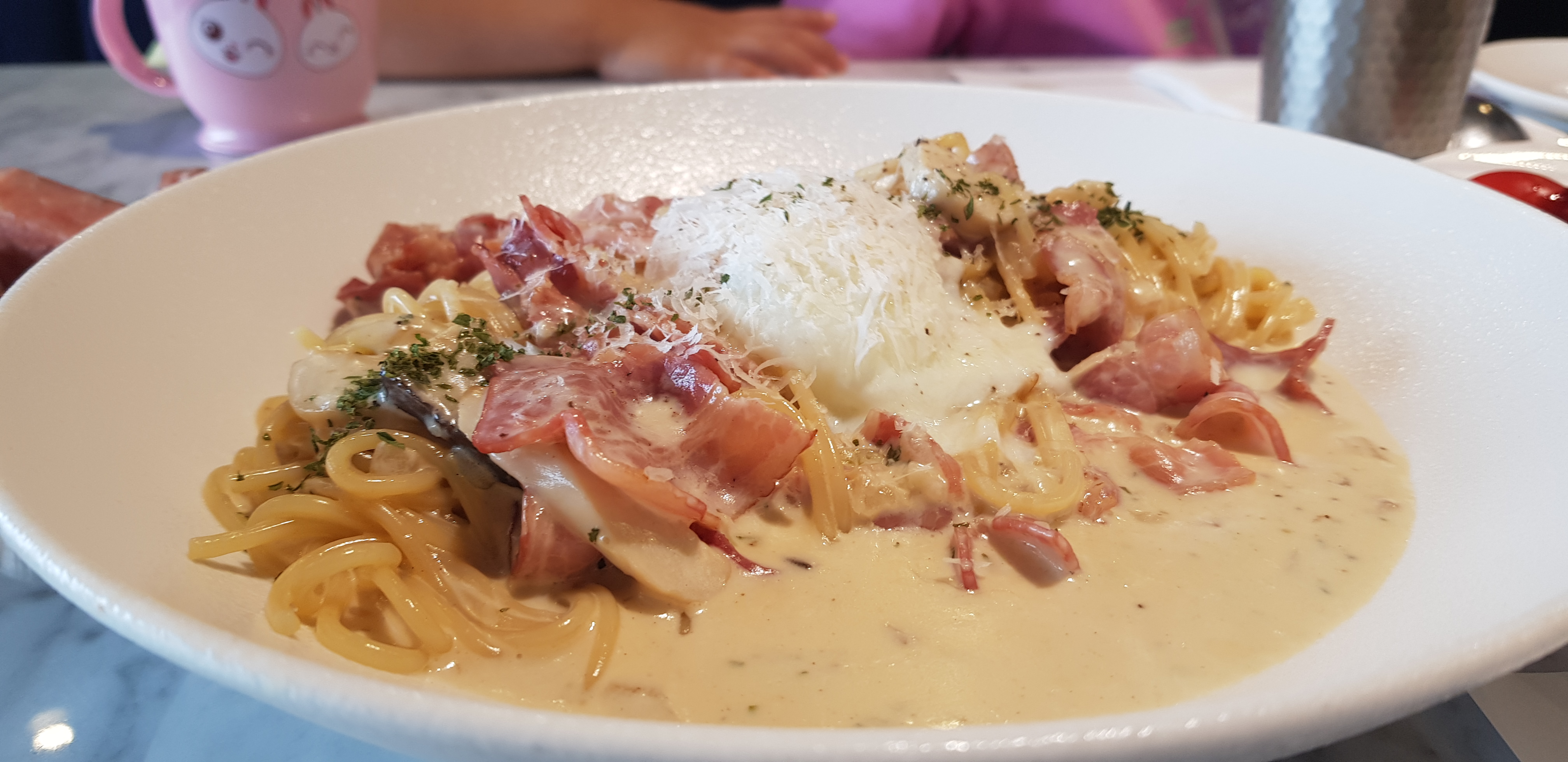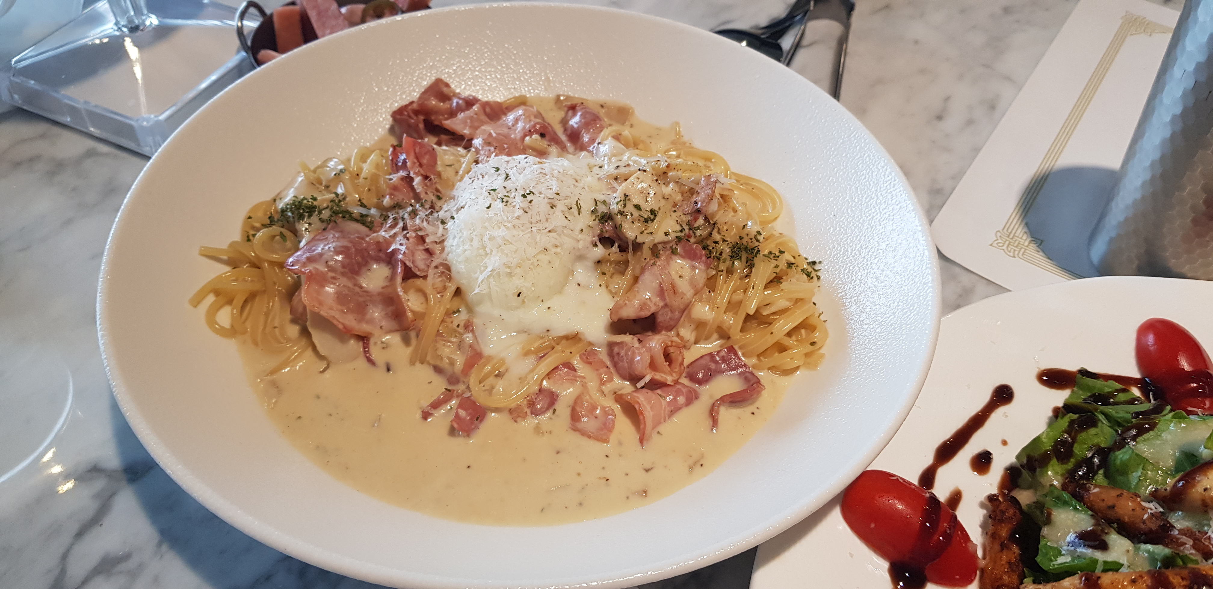 까르보나라 저기 흰색깔은 수란입니다.