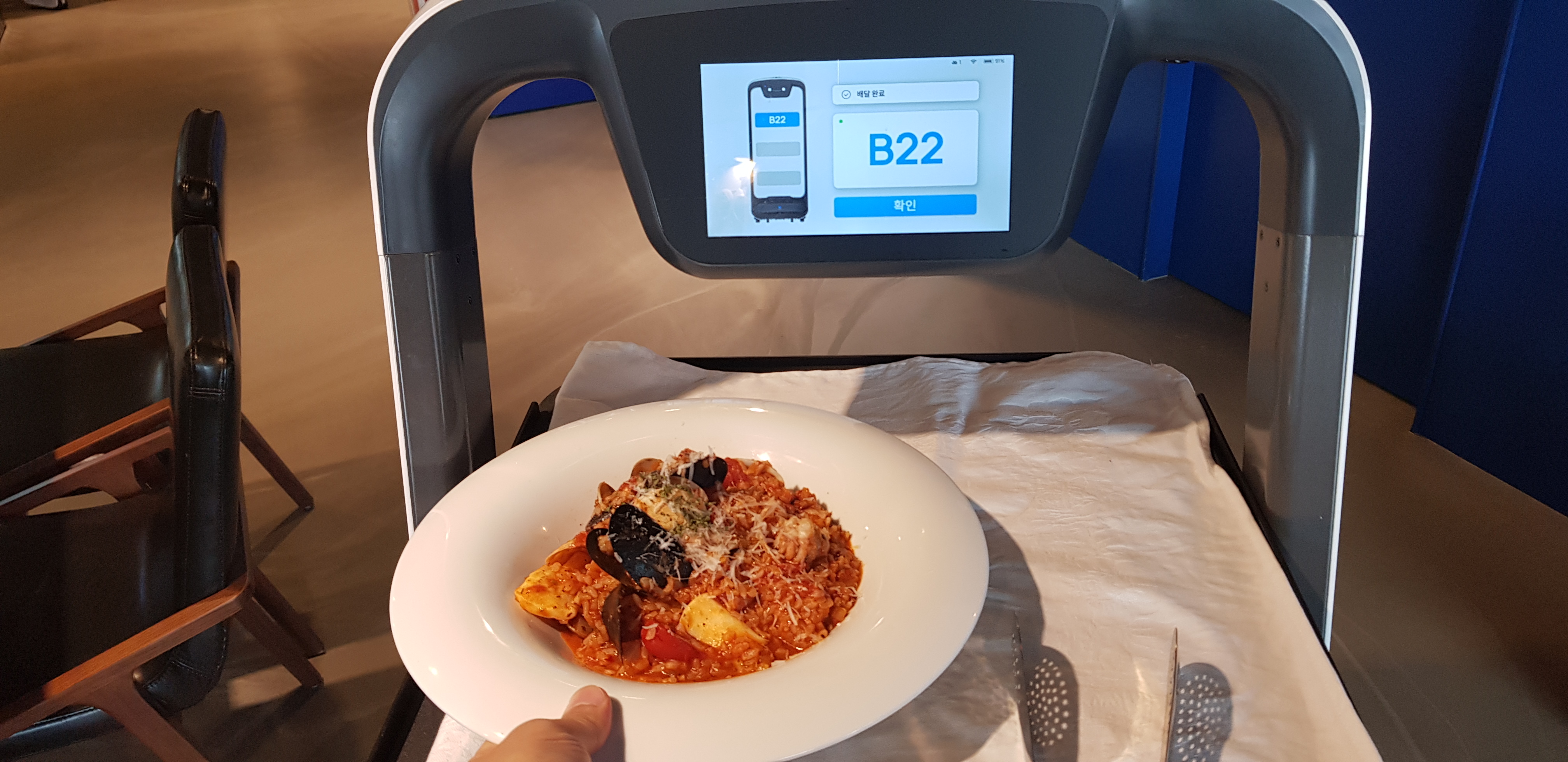 그런데, 배달을 로봇이 하고 있더라고요.
