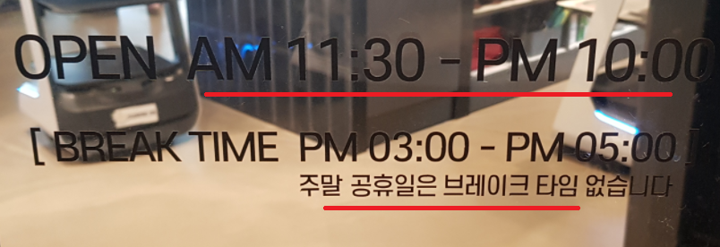 - 브레이크타임 15:00 - 17:00(주말 및 공휴일제외)