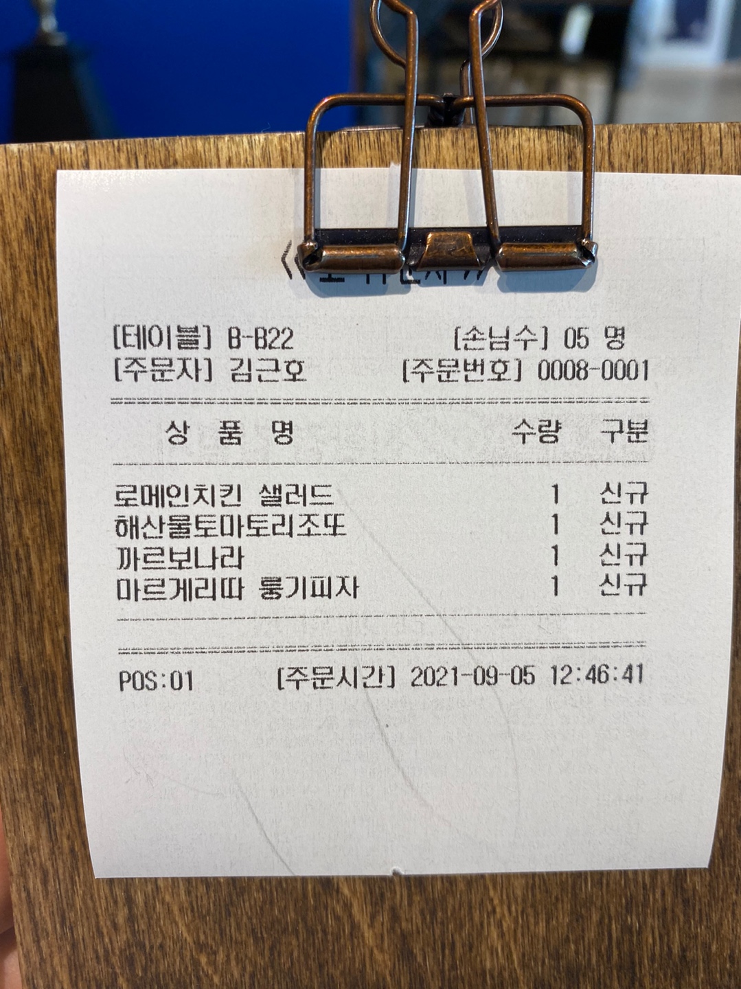 음식을가지고 나서, 확인을 누룹니다.