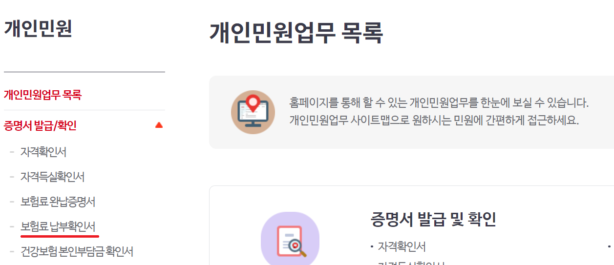 2) 보험료납부확인서를 클릭합니다.