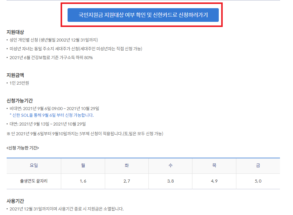 그리고 아래 지원금액및 사용기간이 있으니 참고해주세요.
