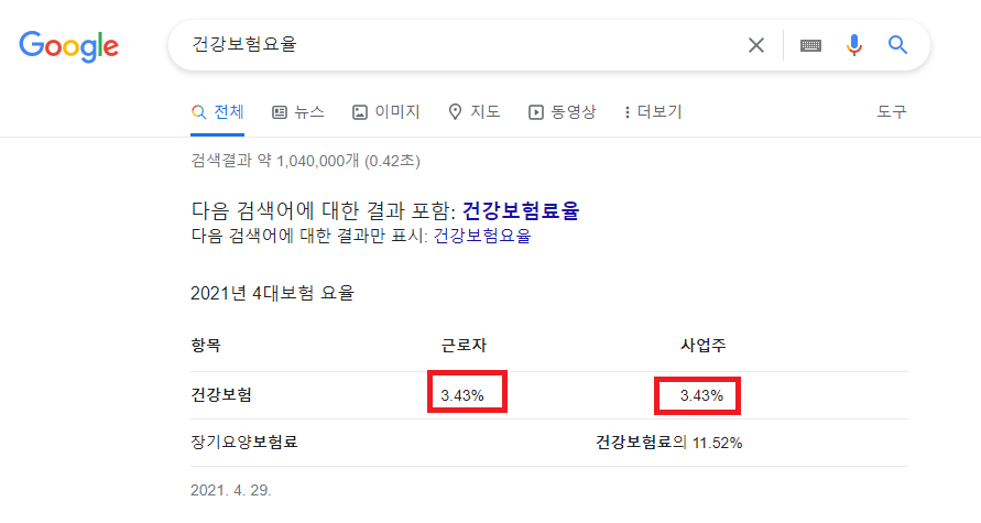 현재 근로자, 사업주 모두 3.43% 인것을 알수 있습니다.