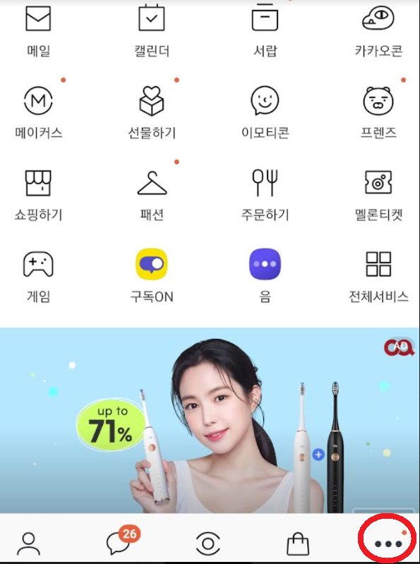 그리고 핸드폰에 카독을 여셔서 더보기를 누릅니다. (아래 빨강색 동그라미)