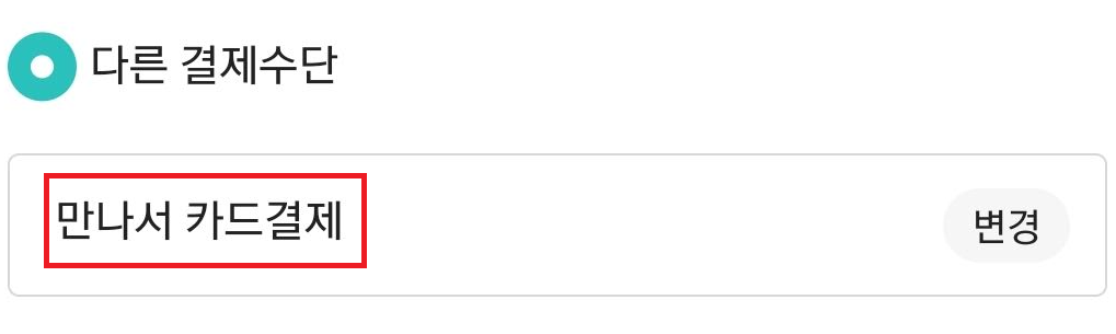 3. 아래와 같이 다른 결제수단으로 만나서 카드결제로 변경된것을 확인합니다.