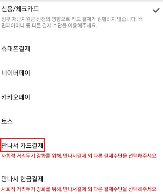 2. 아래와 같이 만나서 카드결제로 변경합니다.