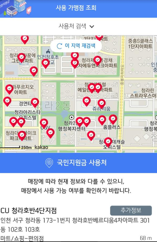쓸수 있는 가맹점들을 확인하실 수 있습니다.