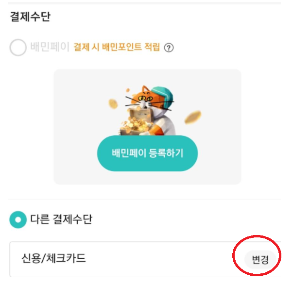 아래에서 다른결제 수단에서 변경을 누릅니다.