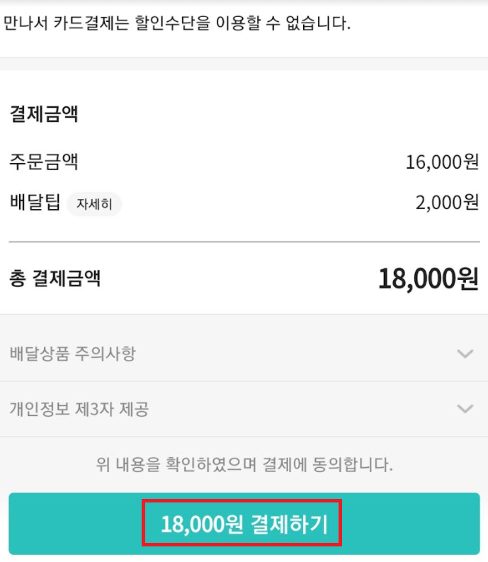 3. 아래와 같이 다른 결제수단으로 만나서 카드결제로 변경된것을 확인합니다.