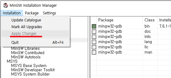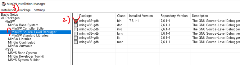 11. MinGW Source-Level Debugger를 누루고 mingw32-gdb를 체크합니다. 저는 이미 설치가 되어서..