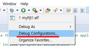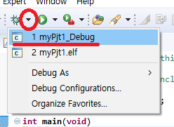 7. 이제 보드와 연결을 시켜 봅시다. 아래에 벌레처럼 생긴것을 누르고 Debug As를 누루고