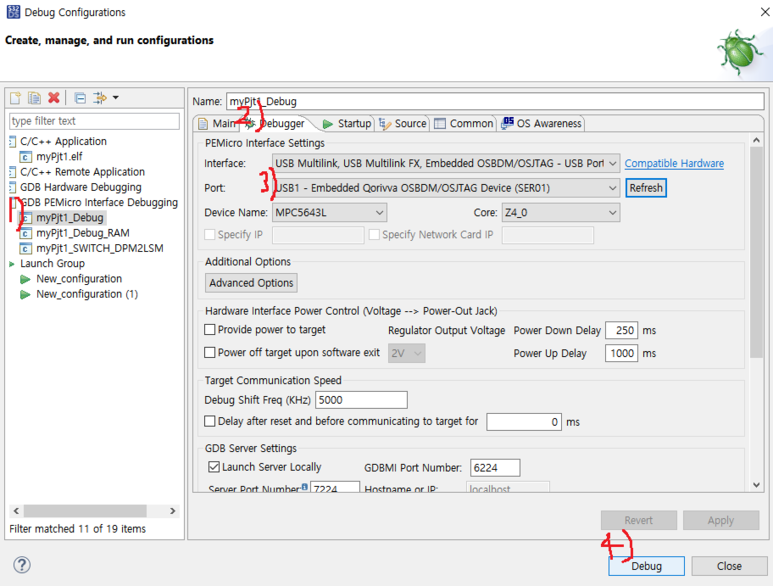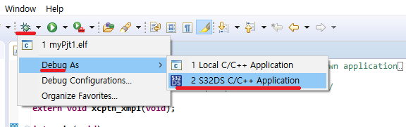 15. 이제 다시 S32 Design Studio로 와서 Debug Configurations를 누룹니다.