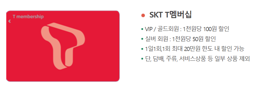 아래 사이트에서 통신사 멤버십 할인 정보가 있습니다.