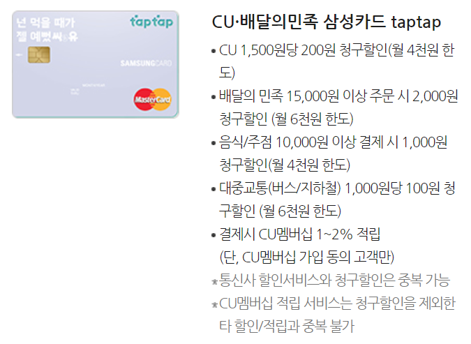 아래와 같이 CU/배달의민족 삼성카드 taptap의 경우에는