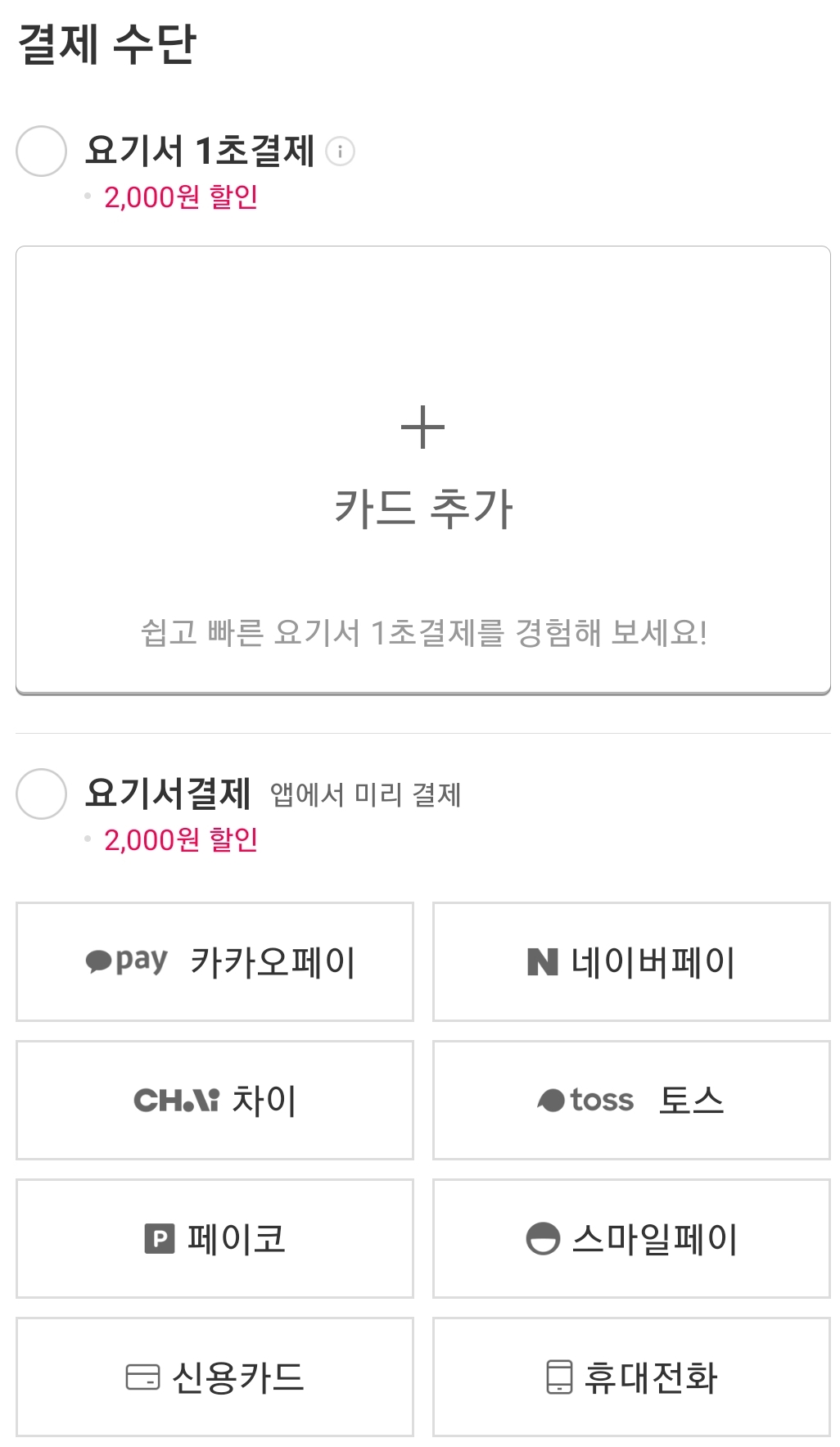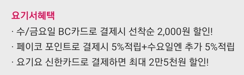 하지만 요기요 신한카드 사용시 할인혜택이 많이 있네요 ㅎ 참고해주세요.