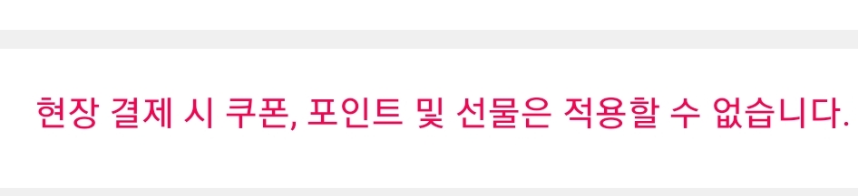 3. 또한 아래와 같이 현장결제시는 쿠폰, 포인트 사용은 불가합니다.