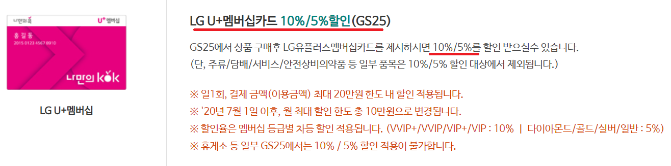 LG U+멤버십카드는 10%, 5% 할인을 받을수 있네요!!!