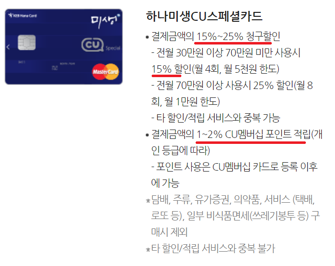1. cu 편의점 할인카드, 제휴카드 정보 정리