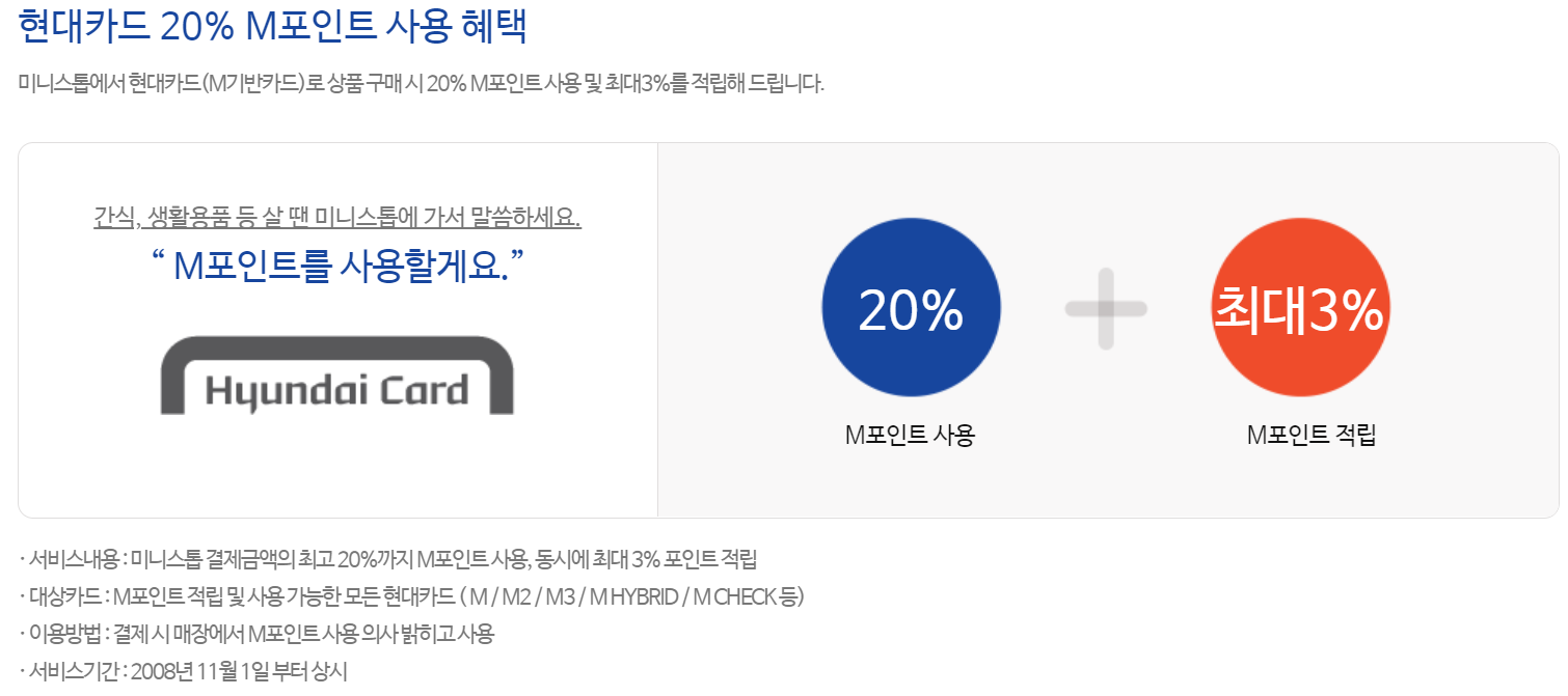 20%에 대해 M포인트를 사용할수 있고, 3%의 적립이 가능합니다.