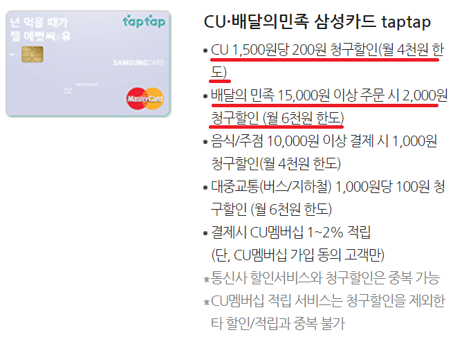 그렇다 하더라도, 배달의 민족 및 대중교통할인도 받을수 있어서