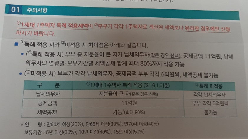 하지만, 1세대 1주택자 특례 적용세액으로 할경우, 공동명의로 했을떄보다 더 유리한 경우가 있습니다.