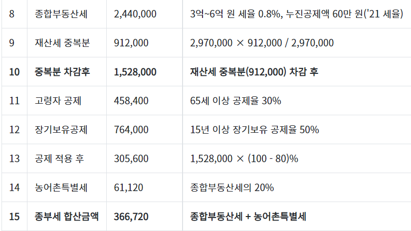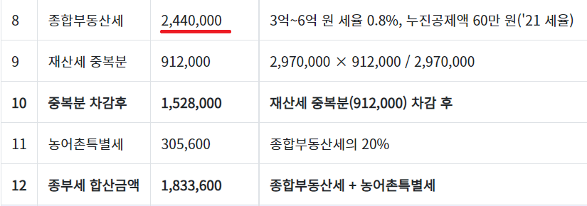 따라서 중복분 차감된 종합부동산세 = 456,000원입니다.