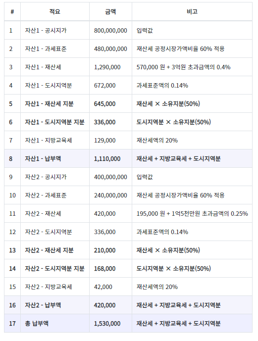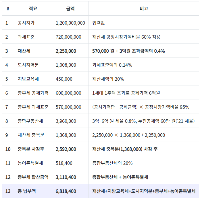 여기서 재산세 중복분으로 이중과세가 된 부분을 계산하면