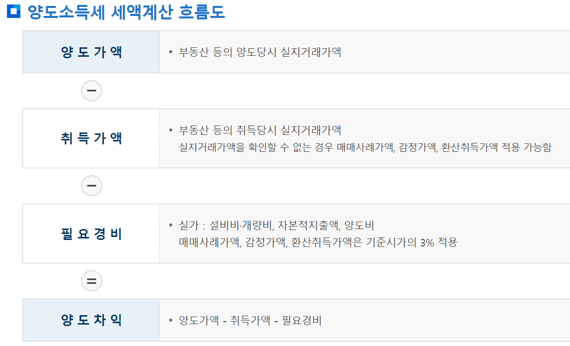 양도 차익 = 양도가액 - 취득가액 - 필요경비
