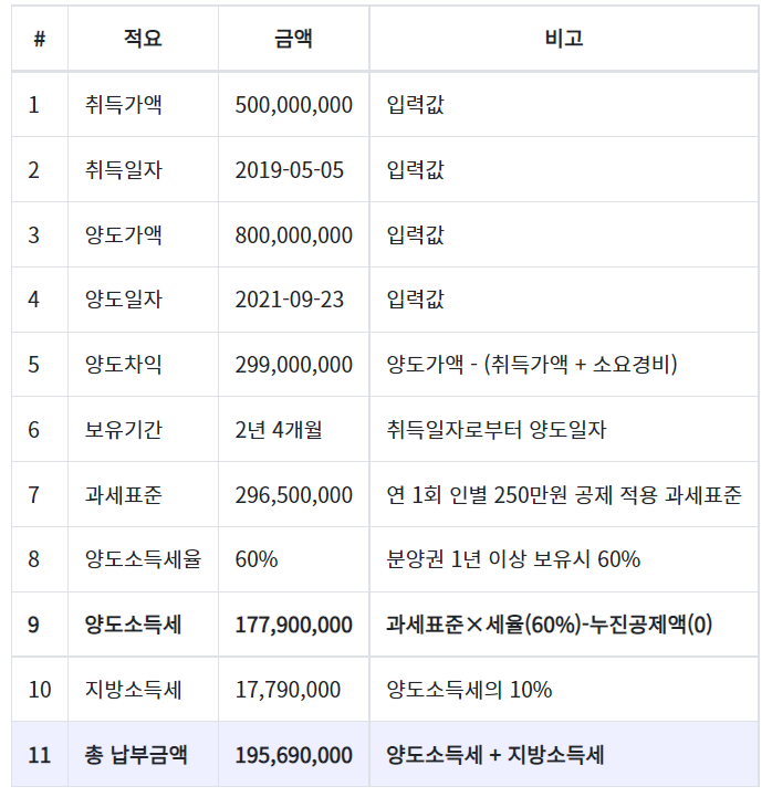 2. 아파트 분양권 양도 소득세 계산