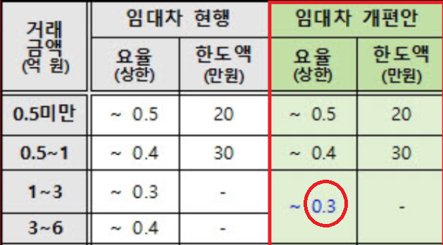 - 아래와 같이 임대차 개편안 상한 요율은 0.3%입니다.
