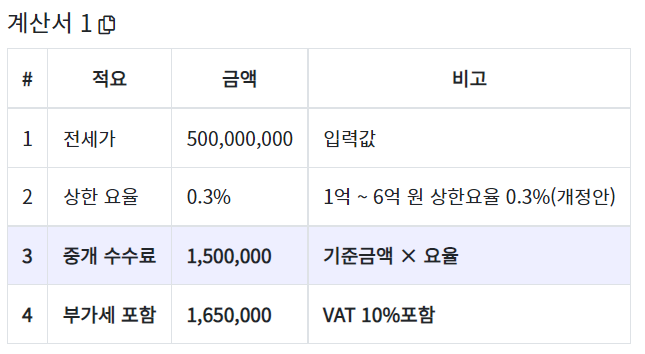 - 중개수수료 = 500,000,000 x 0.003 = 1,500,000