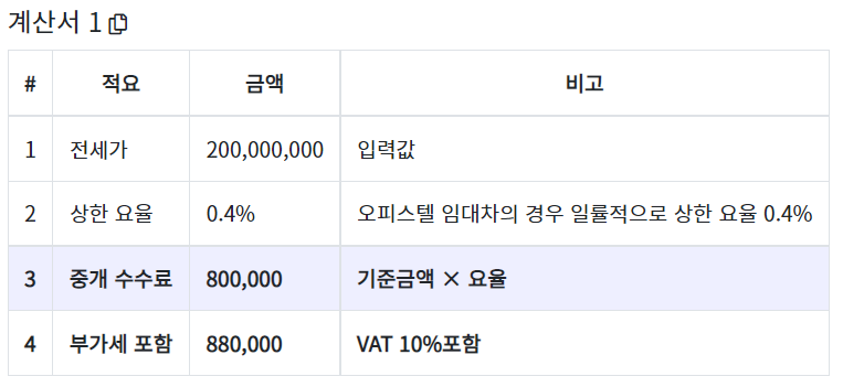 - 최종중개수수료 = 800,000 + 80,000 = 880,000원