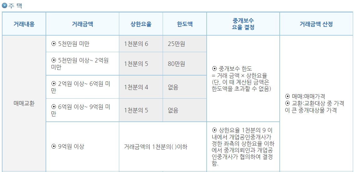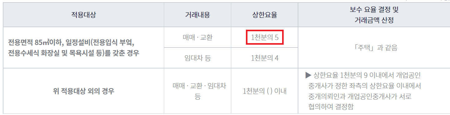 현재, 중개보수 요율표는 아래와 같습니다.