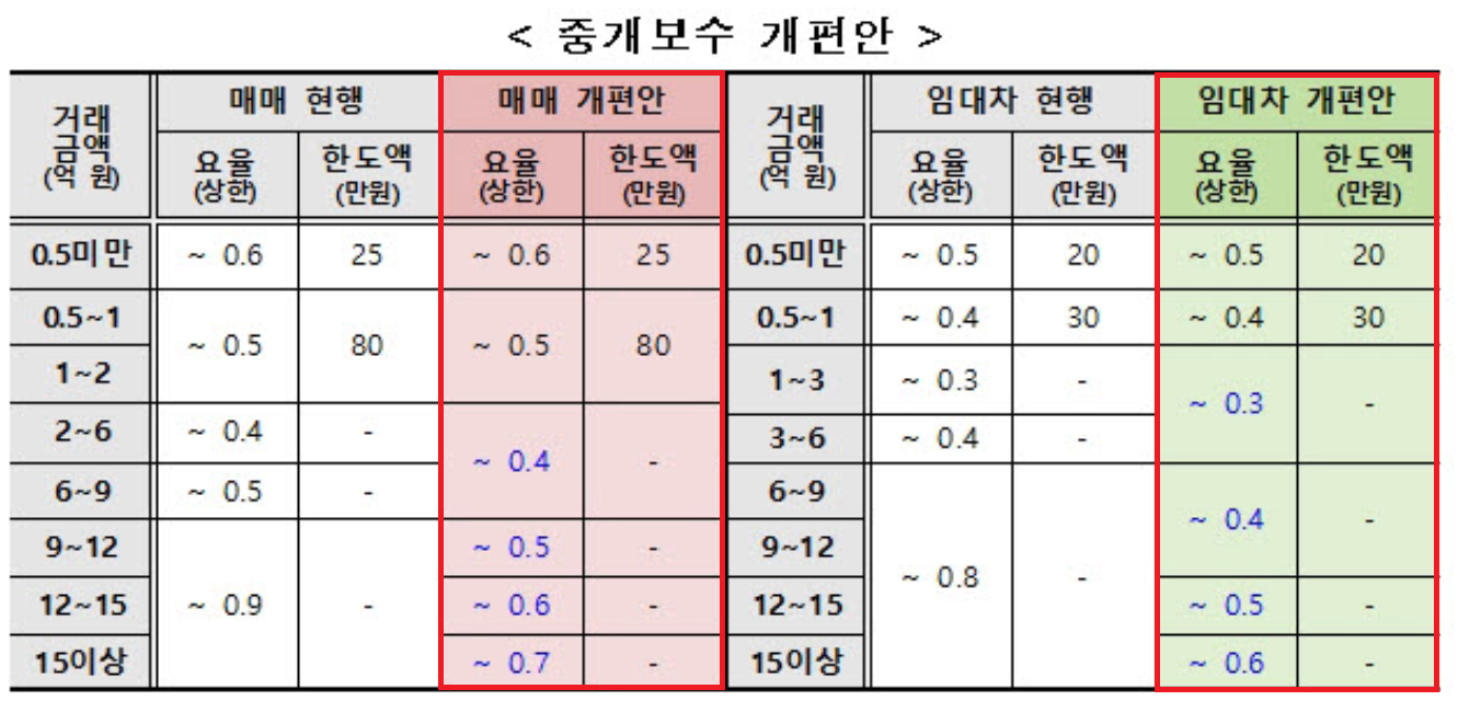하지만, 8월20일 발표된 중개보수 개정안은 아래와 같습니다.
