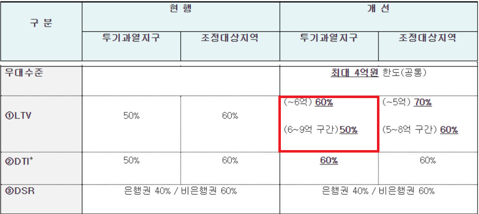 2) 주택가격 기준(투기 6→9억원, 조정 5→8억원) 상향