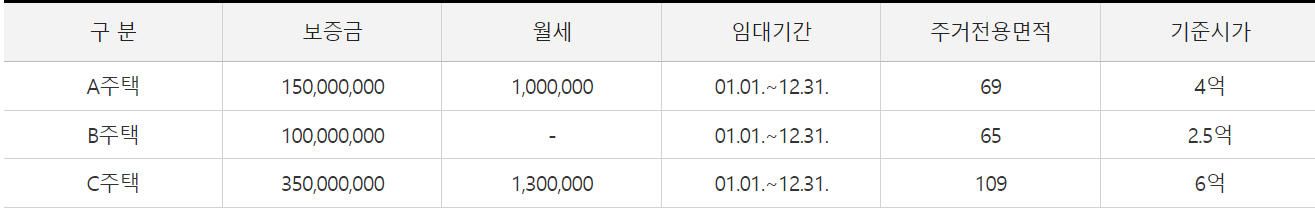 B주택 전세금 : 100,000,000