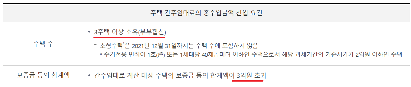 우선 간주임대료를 계산할때 중요한 부분은 부부합산 3주택 이상 소유한 경우에만