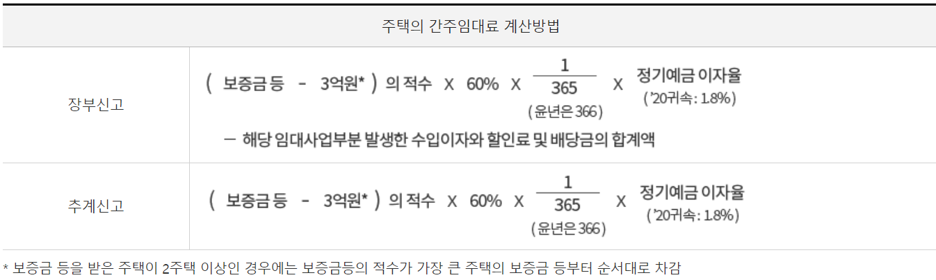 보증금, 전세금에 대한 임대소득(간주임대료)을 계산하는 방식을 정리해 보도록 하겠습니다.