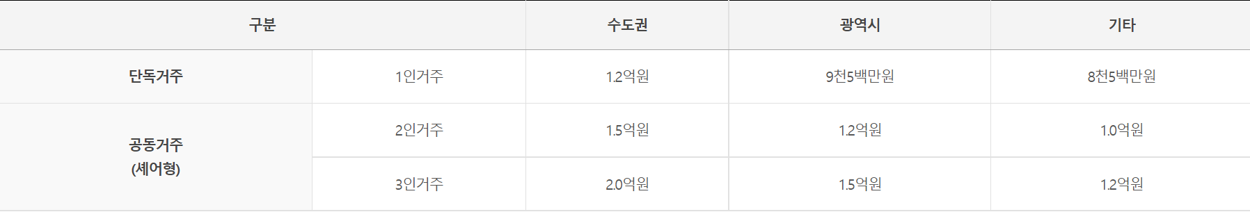 단, 전세금 총액은 호당 지원한도액의 150% 이내로 제한(셰어형은 200% 이내)